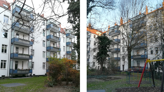 Die vier Mehrfamilienhäuser