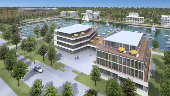 Visualisierung auf Grundlage eines Konzeptentwurfes eines Marina-Hafens an der Ostsee.